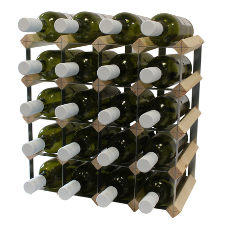 Fully Assembled Wooden Wine Rack - Natural Pine & Galvanised Steel 20 Bottle 4 x 4