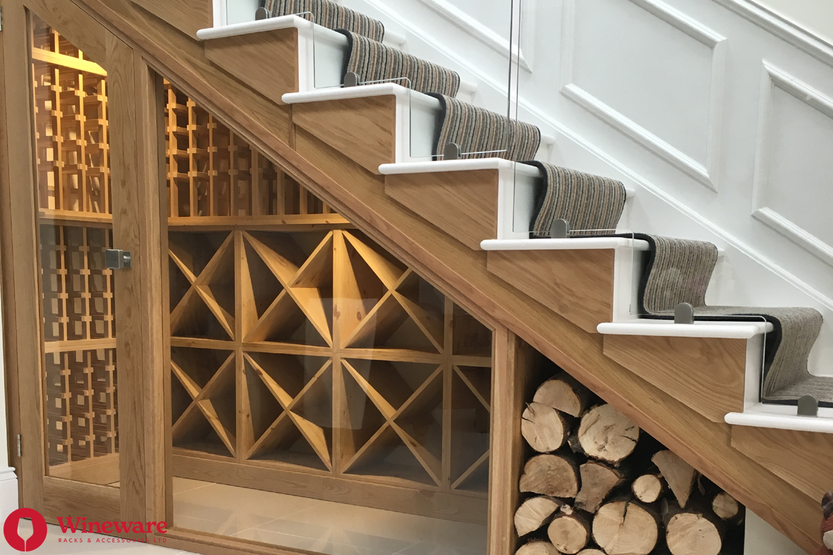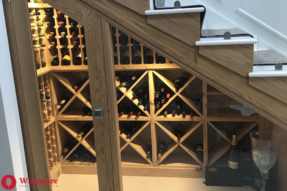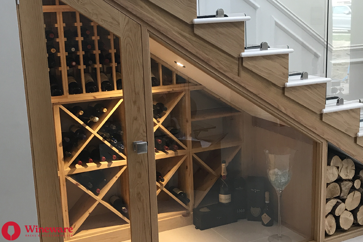 This understairs space in a private home in Durham has now been transformed into a beautiful wine room perfect for storing various wines, champagne bottles and much more! Space has been finished with a glass front and door and can hold up to 350 bottles (29+ cases) thanks to the bespoke racking from Wineware. When entering the recently renovated property, the homeowner wanted a 'wow factor'; our bespoke wine storage room ticks all the boxes required!