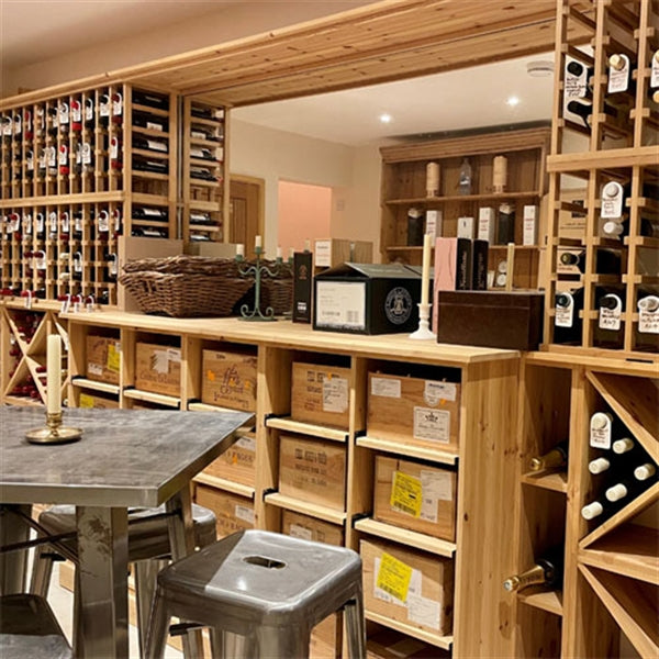 5-Star Hotel Commerical Wine Room in London, using pine racking, cubes, case racks and more