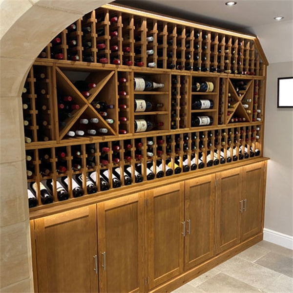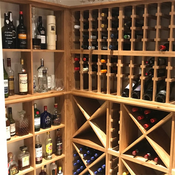 Expansive wine wall in a residential property in Northamptonshire using solid pine