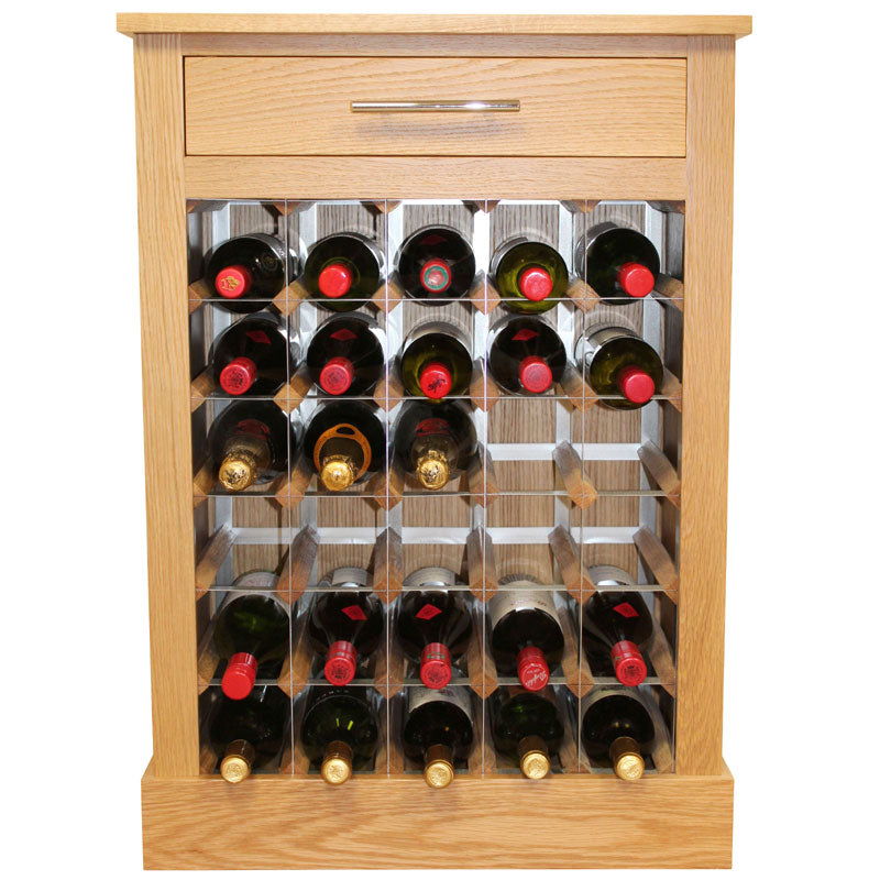 This 30-bottle Wine Cabinet with a drawer is made of solid oak and can be supplied with either an all-wood wine rack or a wood and galvanised steel wine rack.