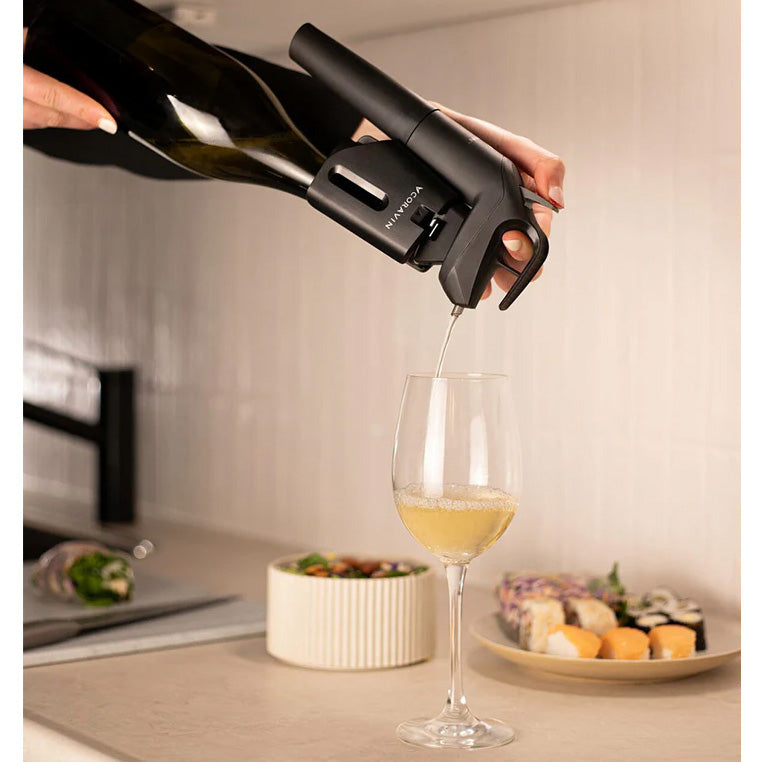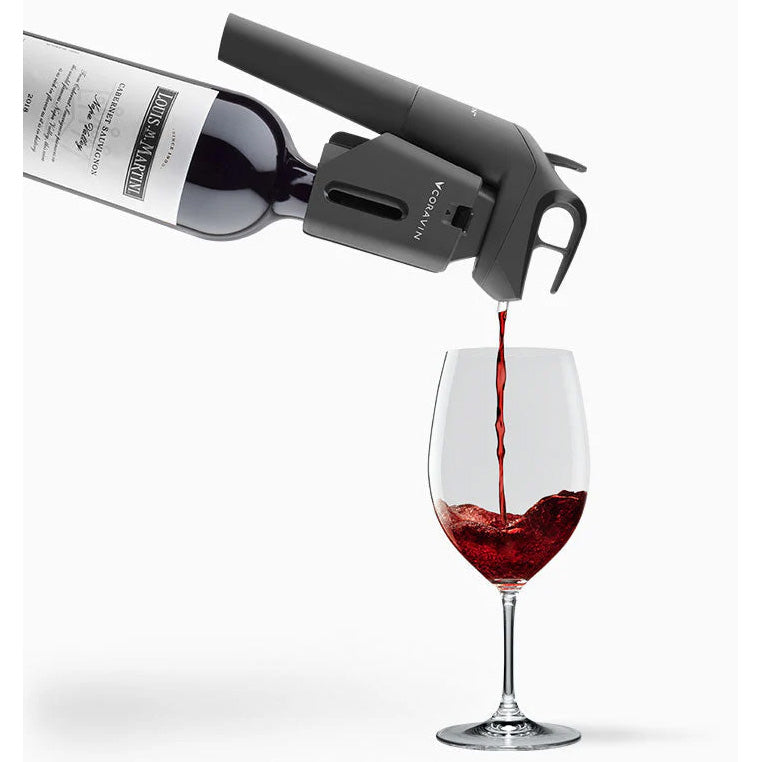 - Pour | Press the trigger to pressurise the bottle with argon, a safe and inert gas used by winemakers. Release the trigger to pour wine into your glass. When you've poured your desired amount of wine, tilt the bottle upright.