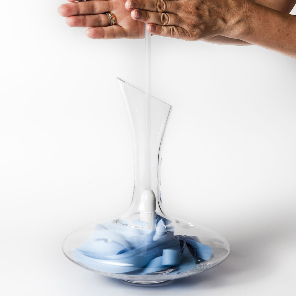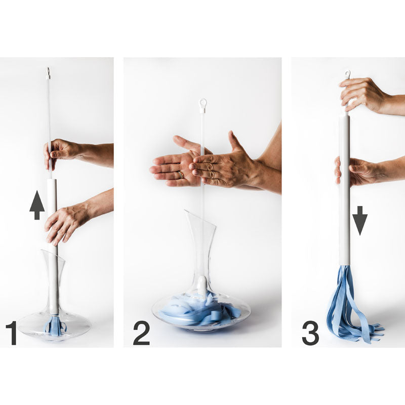 - Twist the drying wand quickly between the palms of your hands until the decanter is clean and dry