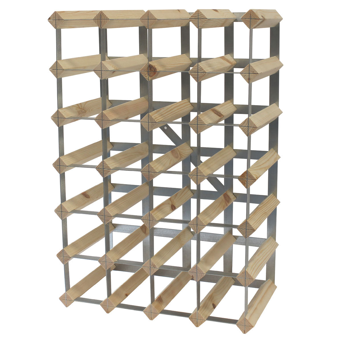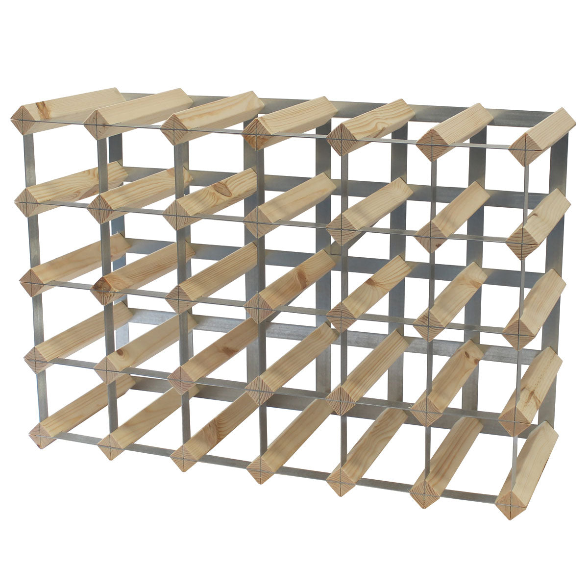 Fully Assembled Wooden Wine Rack - Natural Pine & Galvanised Steel 30 Bottle 6 x 4
