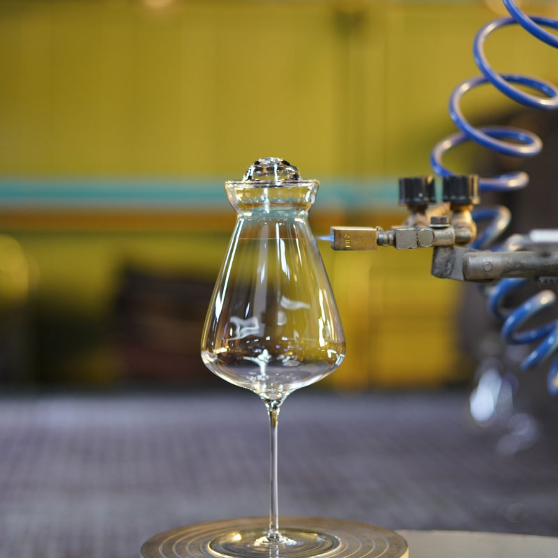 Five artisans are required to create a mouth-blown glass. Each production step requires years of apprenticeship before the artisans are experienced enough to make these glasses from Grassl. Their ability to recreate a unique product with exceptionally similar tolerances and consistency is remarkable.