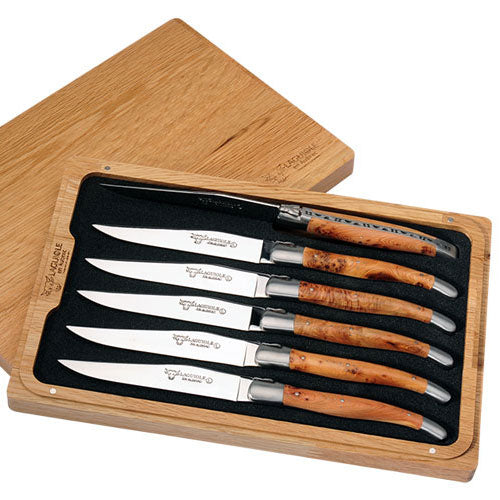 Laguiole en Aubrac 6-piece set consists of steak knives, all with beautiful Juniper Wood Handles.