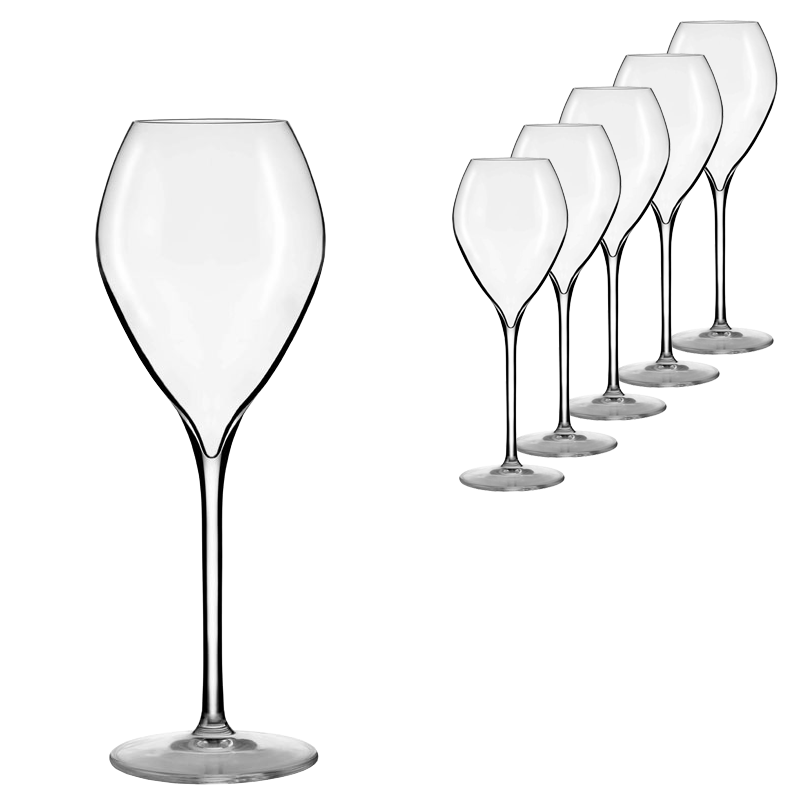 - The wide and generous roundness of each glass permits an optimal stretching of the wine.