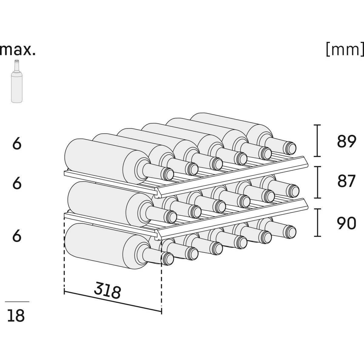 - Bottle Capacity: 18 (Bordeaux bottles 0.75l)