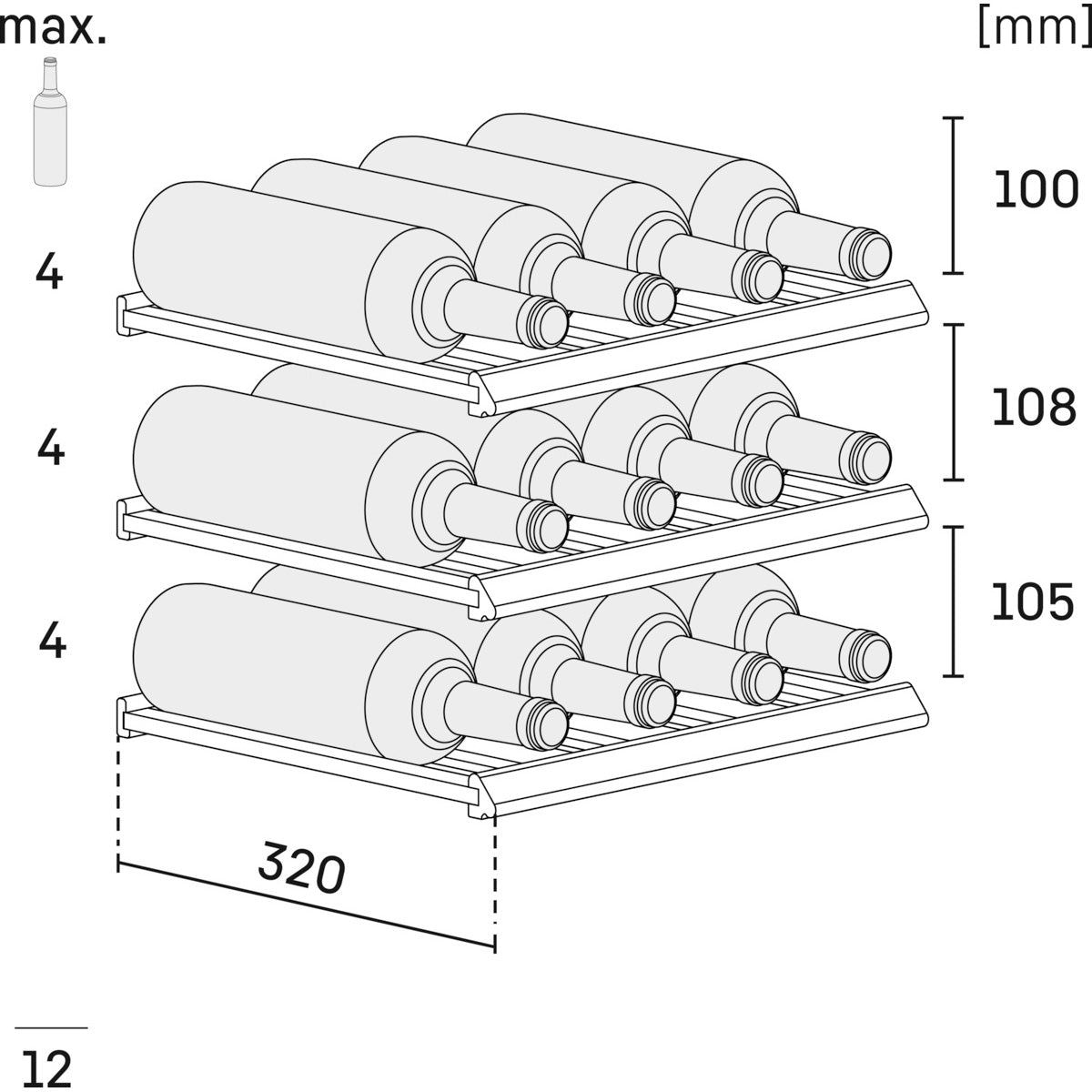 - Bottle Capacity: 12 (Bordeaux bottles 0.75l)