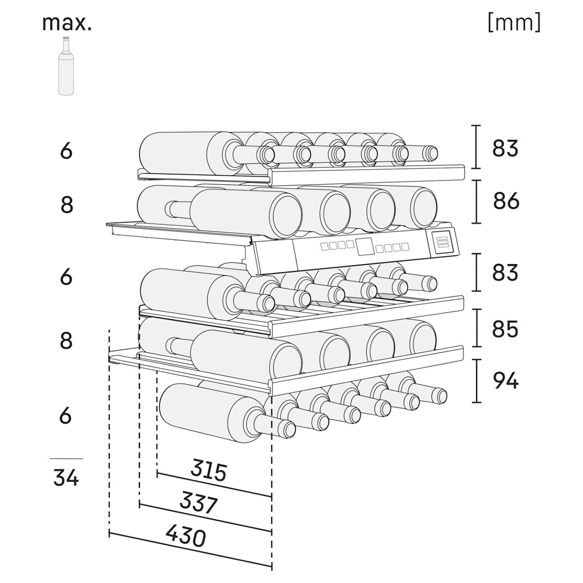• Bottle Capacity: 34 (Bordeaux bottles 0.75l)