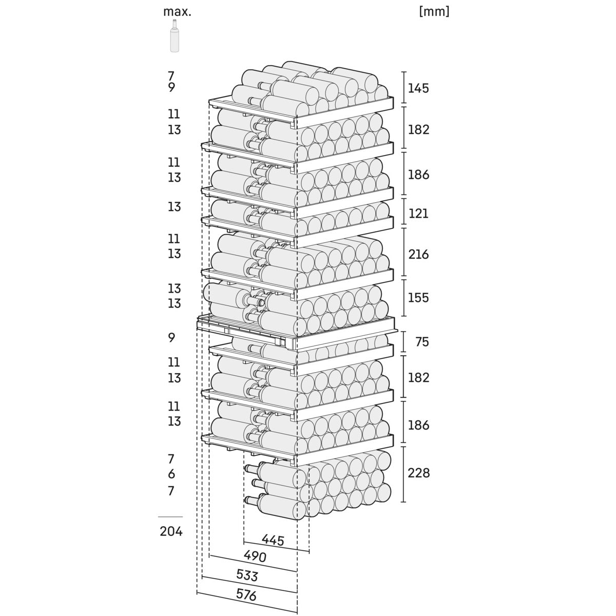- Bottle Capacity: 204 (Bordeaux bottles 0.75l)