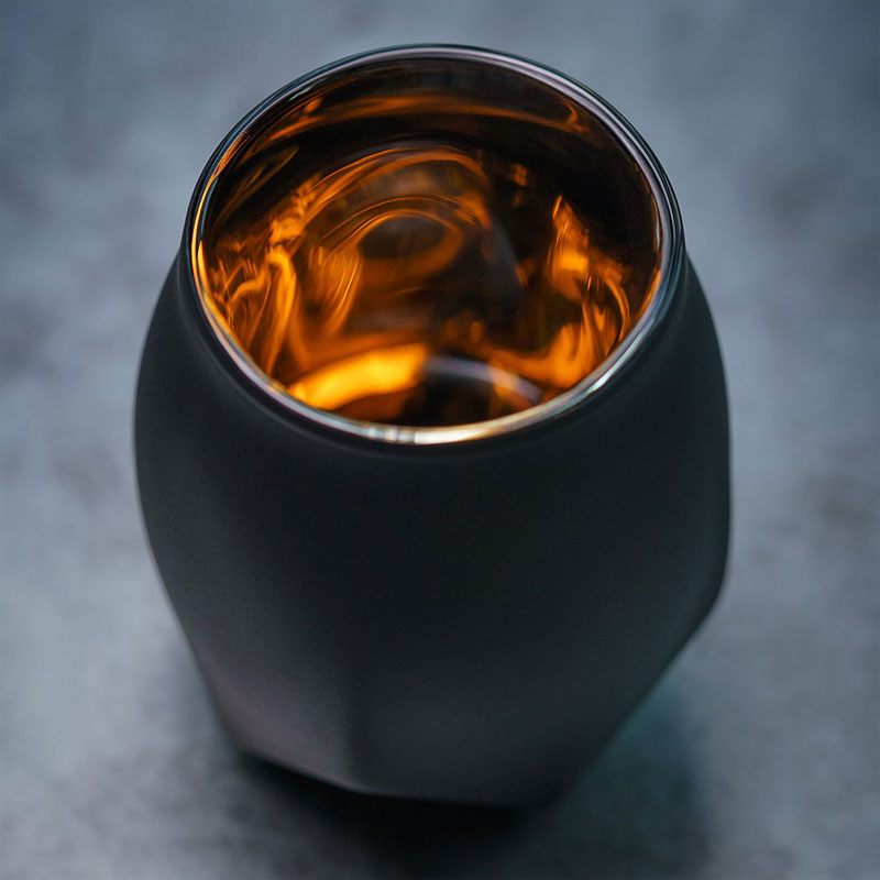 - Mouthblown double-walled borosilicate glass with a matte black exterior finish