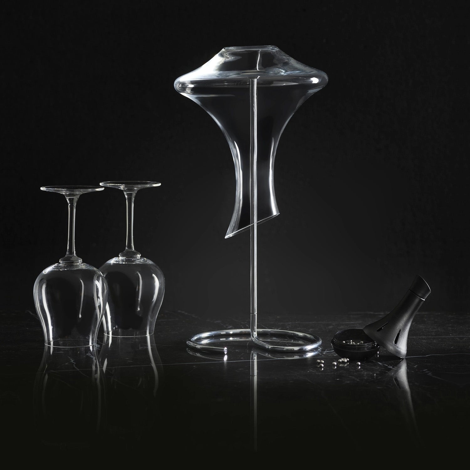 Finding a safe and elegant place to dry a wine decanter can be a challenge. The Peugeot Révolution stand provides the perfect solution. Its graceful, spiral design holds your decanter securely upside down, allowing air to circulate freely for thorough drying without leaving any watermarks.