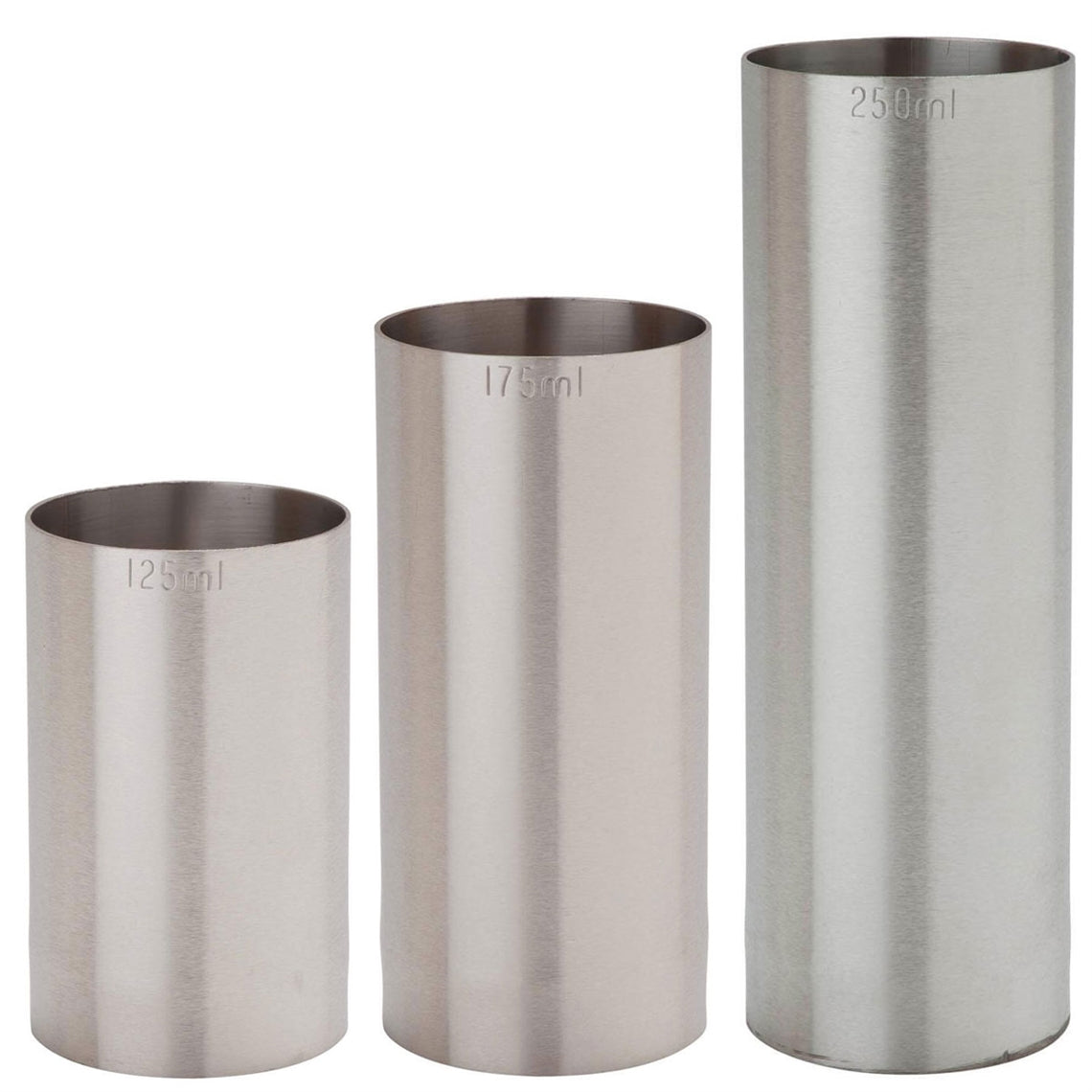 Professional Stainless Steel Thimble Bar Wine Measure Set - 1x 125ml 1x 175ml 1x 250ml