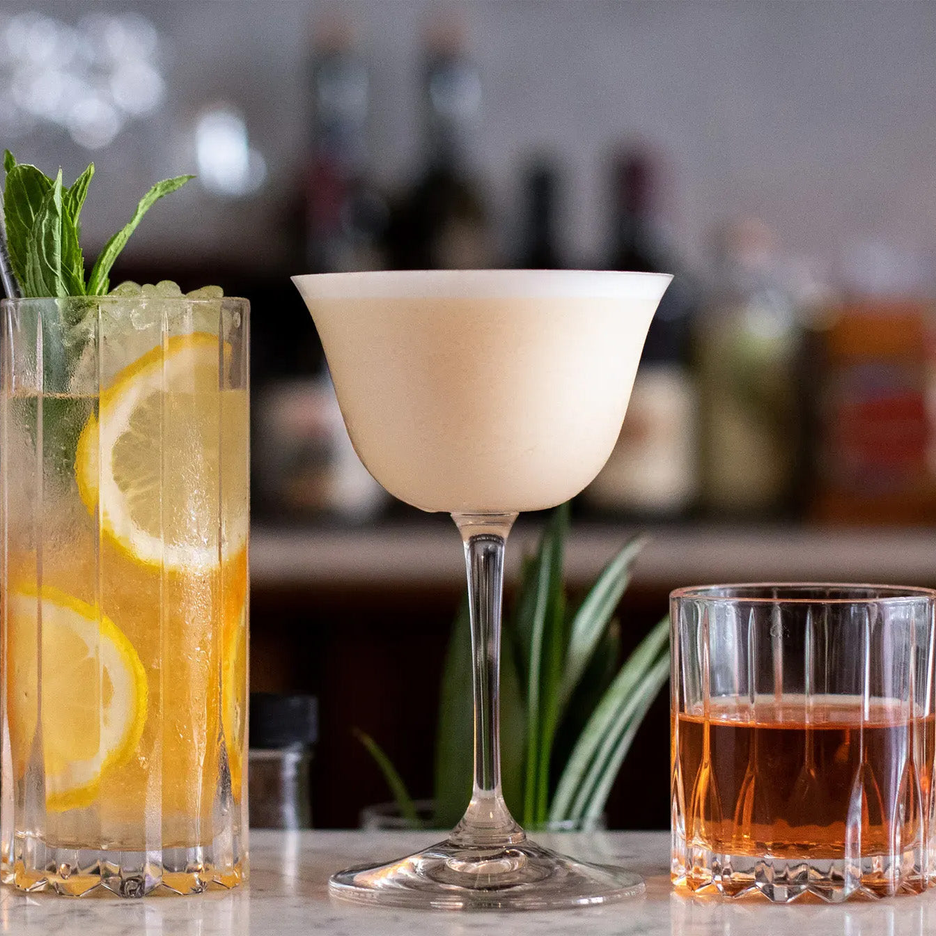 All drinks can be traced back to 7 Classics—the Old Fashioned, Manhattan, Daiquiri, Sour, Peasant, Buck and Julep. With the six glasses, you can make thousands of drinks based on those original 7 Classics.