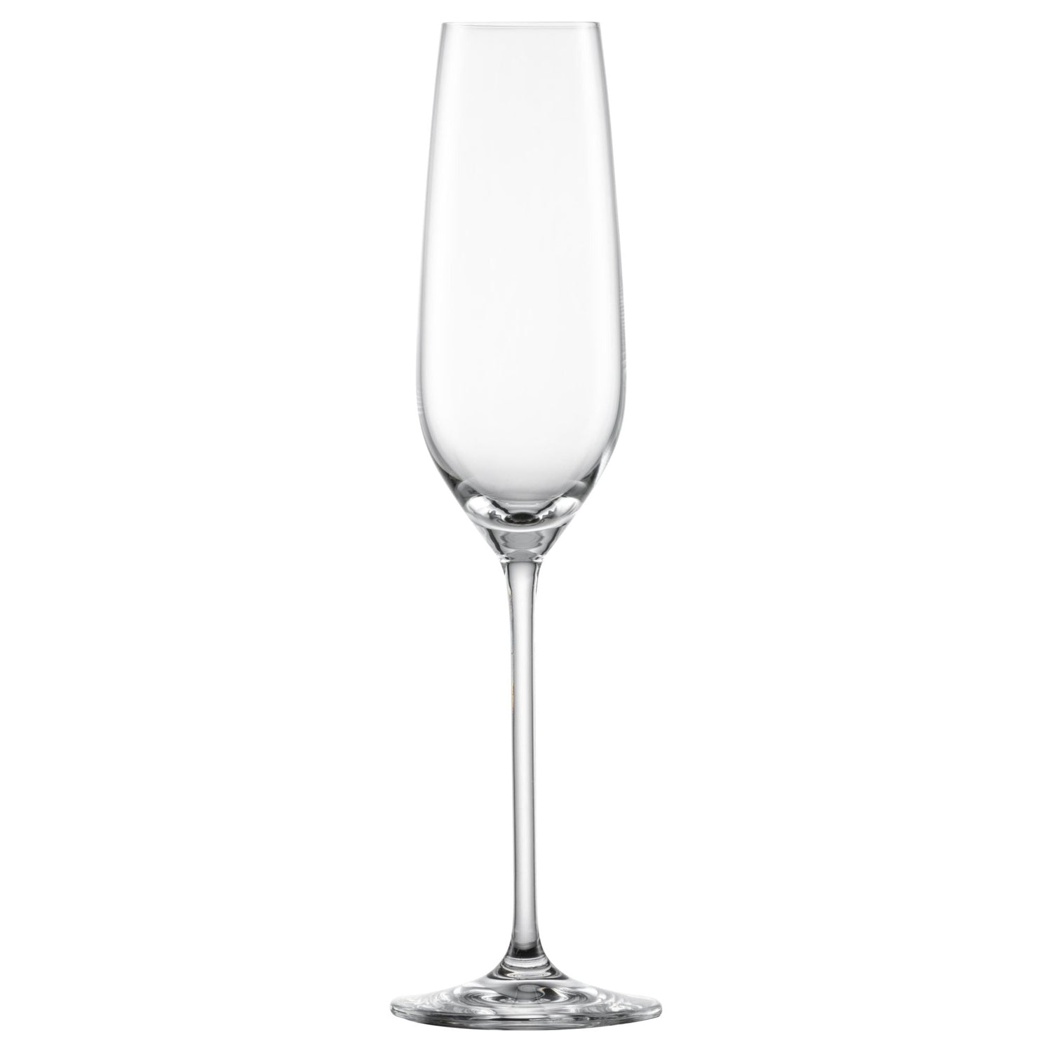 The champagne glass from the Fortissimo series by Schott Zwiesel looks elegant and stylish thanks to its long, thin stem. The mousse point in the glass ensures a great interplay of carbon dioxide bubbles and perfectly sets the scene for sparkling wines such as sparkling wine or champagne.