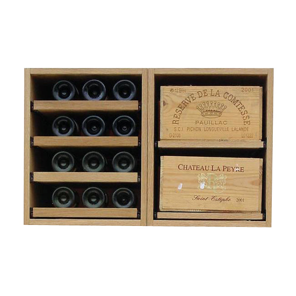 Store up to 48 standard bottles in a mixture of pull-out case racking and individual bottle storage.