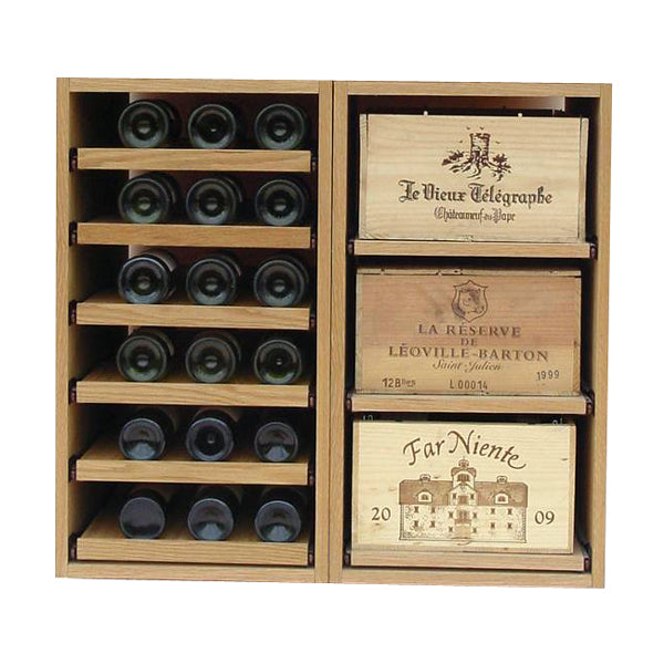 Store up to 72 standard bottles in a mixture of pull-out case racking and individual bottle storage.