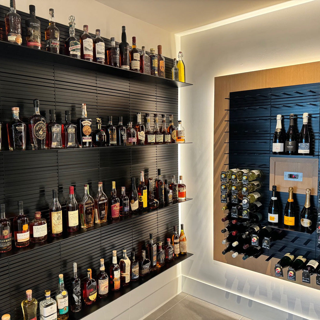 Combine five types of STACT Pro panels to create a one-of-a-kind design that can store and display items beyond wine, such as stemware, carafes, and your most prized personal artefacts.