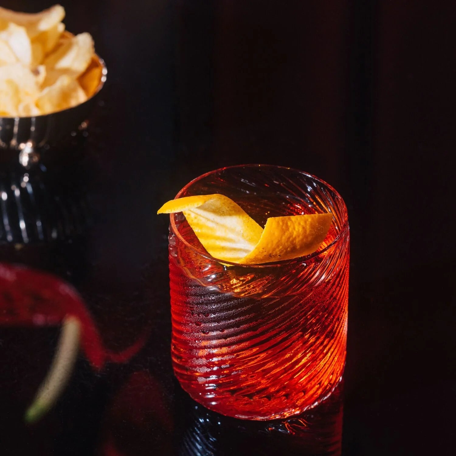 Ideal for whisky, rum or other spirits served neat or on the rocks, the clear lines and textured glass create captivating light reflections that enhance the colour and brilliance of each drink.