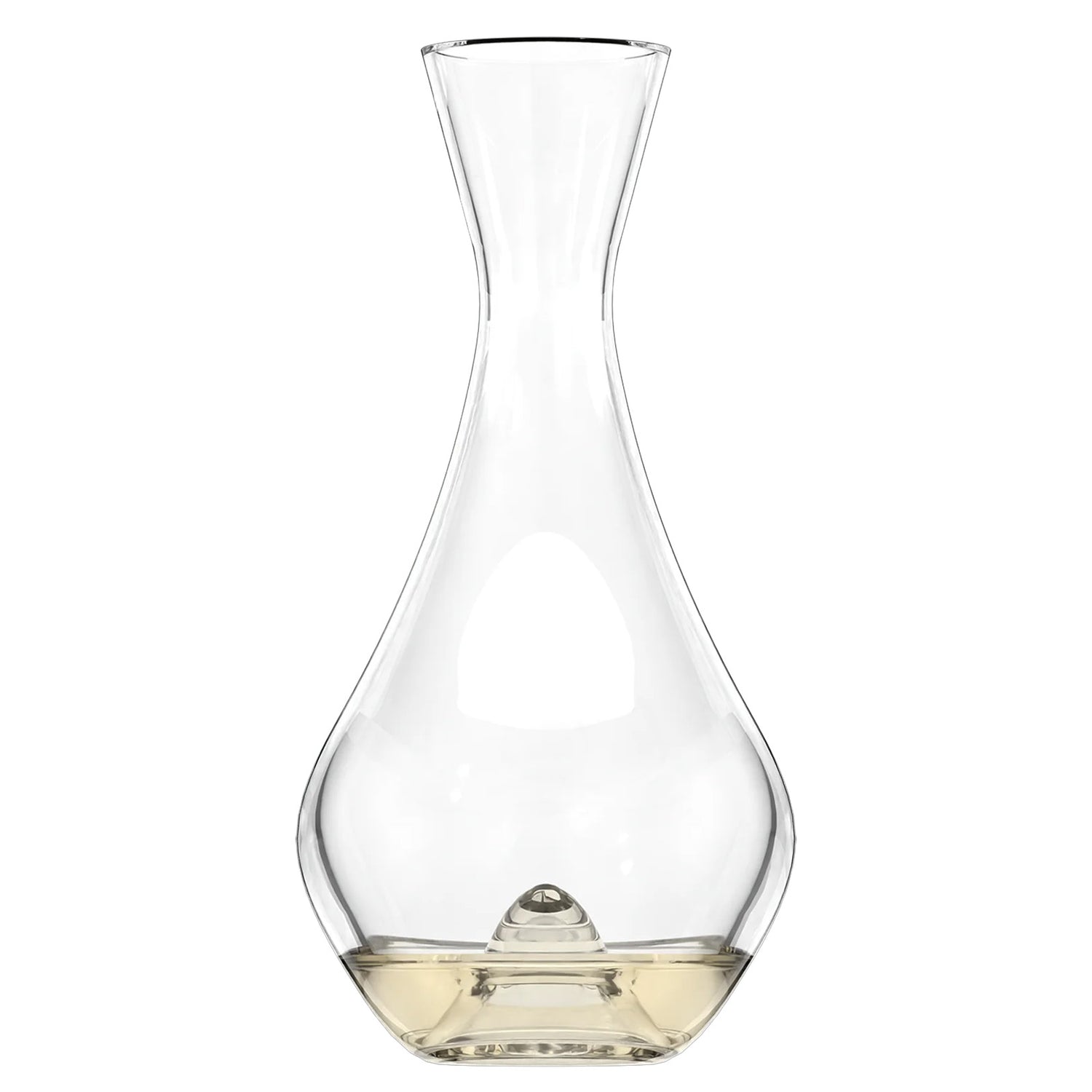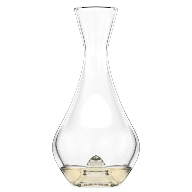 This decanter has an overall capacity larger than 750ml; however, it's designed to take a standard 750ml bottle so that the wine will be at the widest point of the bowl.