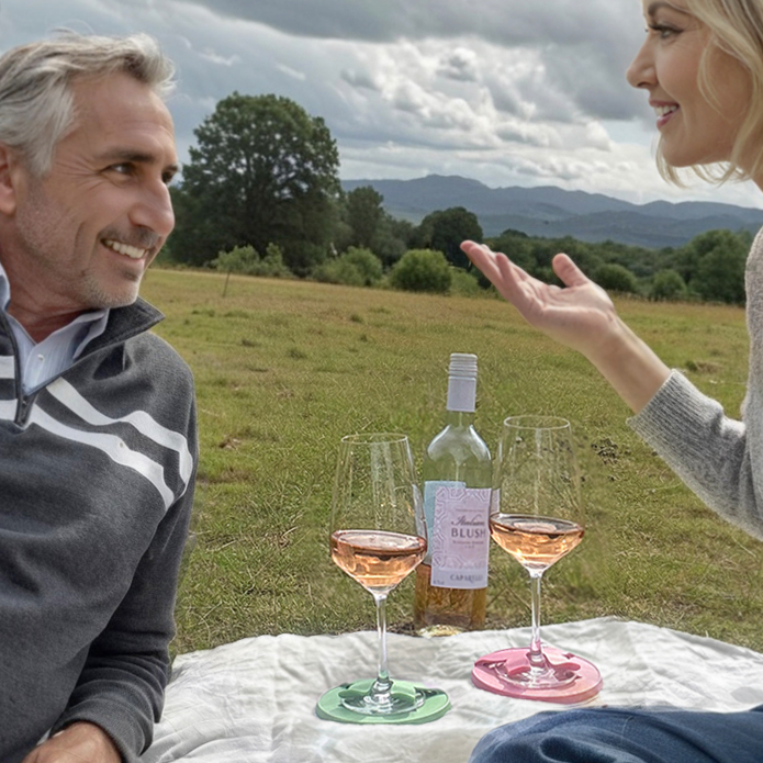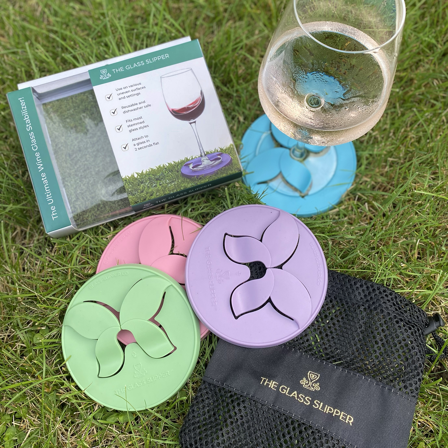 The Glass Slipper's long-lasting, reusable and portable design secures in 2 seconds flat, offering an elegant solution for various challenging surface conditions, including picnics, poolside lounging, camping trips, and other social gathering settings.