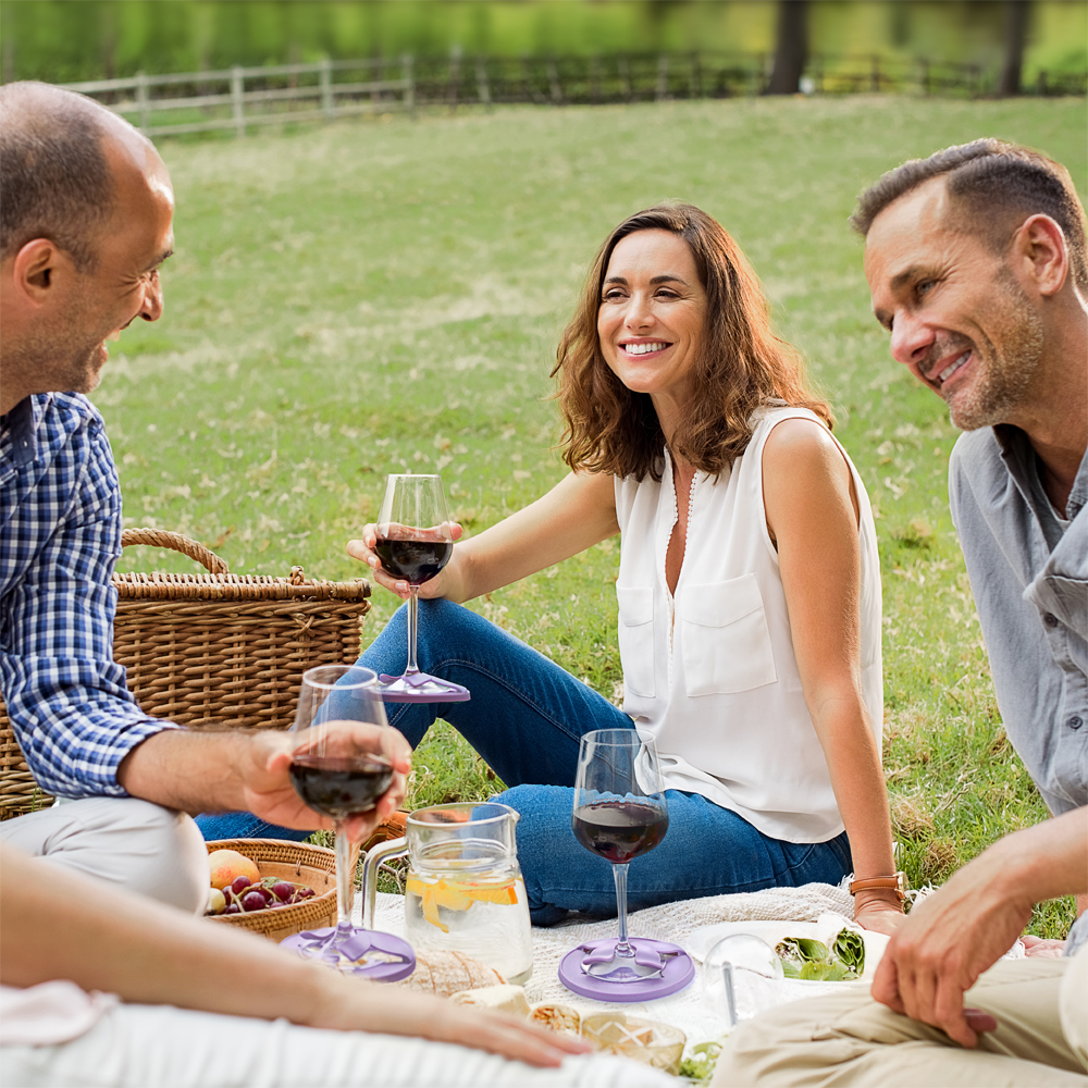 Whether on a well-manicured lawn, camping, under a beach umbrella, or sunning by the poolside patio, it provides an attractive, stable base for any stemmed glass*.