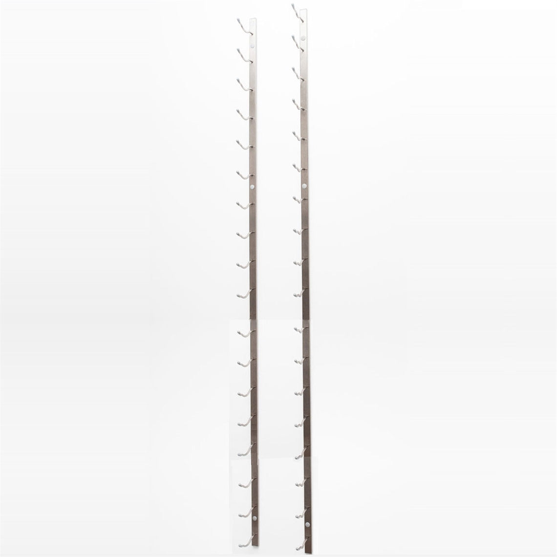 Each VintageView rack comes with two wall-mounted strips, one to hold the base of the bottle and one to hold the neck of the bottle. These can be fixed to the wall either 'left' or 'right' handed so that the bottleneck can face either left or right.