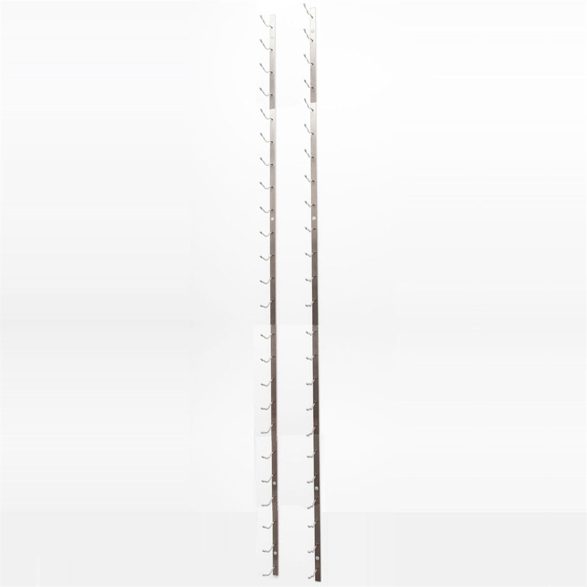 Each VintageView rack comes with two wall-mounted strips, one to hold the base of the bottle and one to hold the neck of the bottle. These can be fixed to the wall either 'left' or 'right' handed so that the bottleneck can face either left or right.