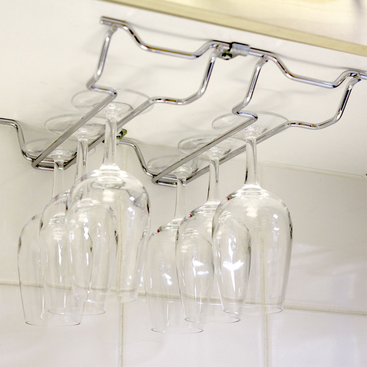 Chrome Plated Steel Wine Glass Hanging Rack - Only suitable for shelf / under cabinet installation.