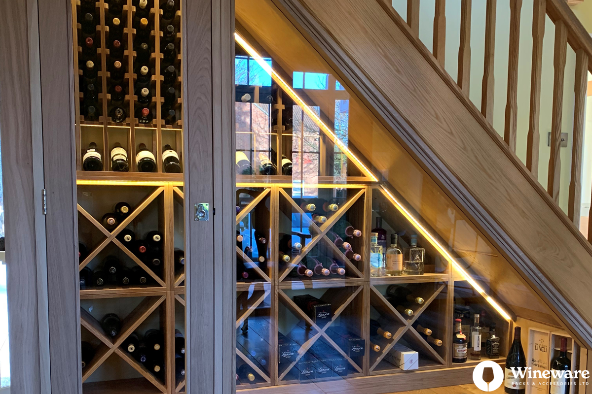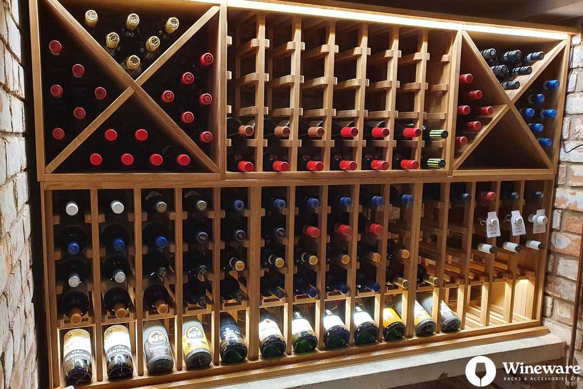 We attempt to design the rack sections so that everything is aesthetically equal and pleasing to the eye. The units are then fitted together horizontally and vertically in the room to give a fantastic effect. The horizontal lines all match the cellar to provide an excellent visual aspect.