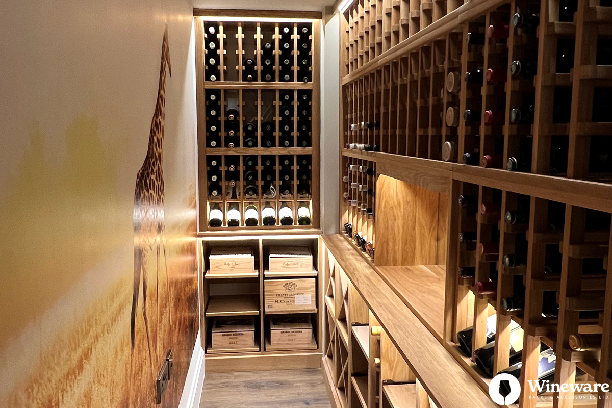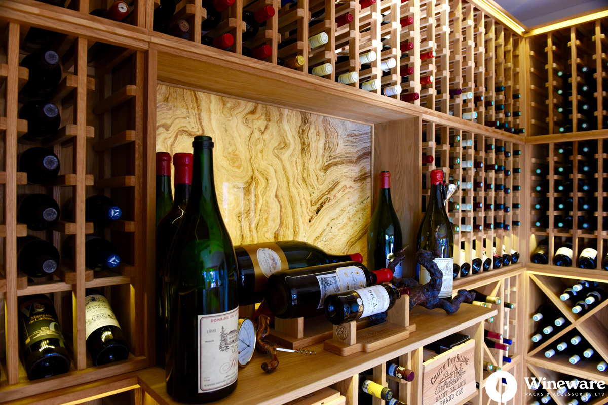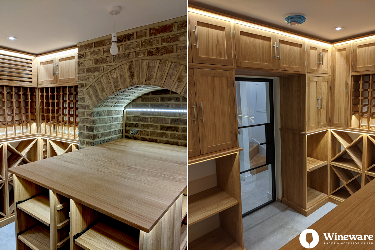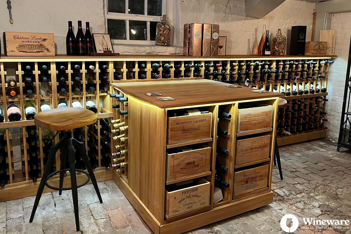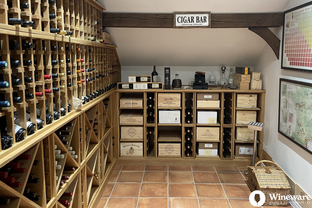 The finishing touches to your cellar are the oak plinths below the individual bottle, storage cubes and case racks, which prevent the lower bottles from being knocked accidentally. The oak tops all the rack components streamline the finished height of the racks and give an overall complete effect.