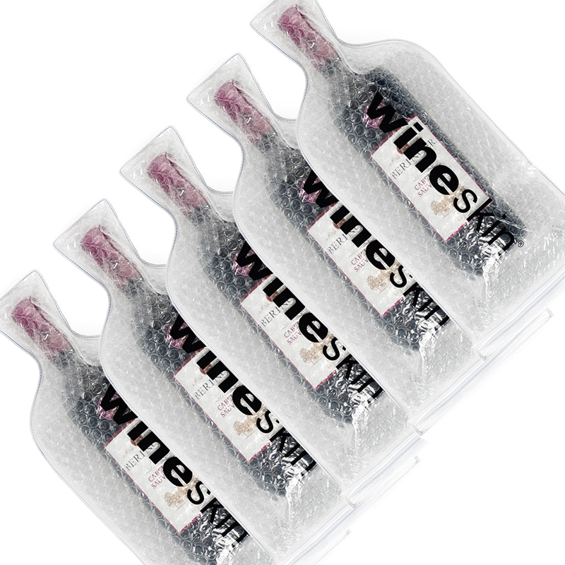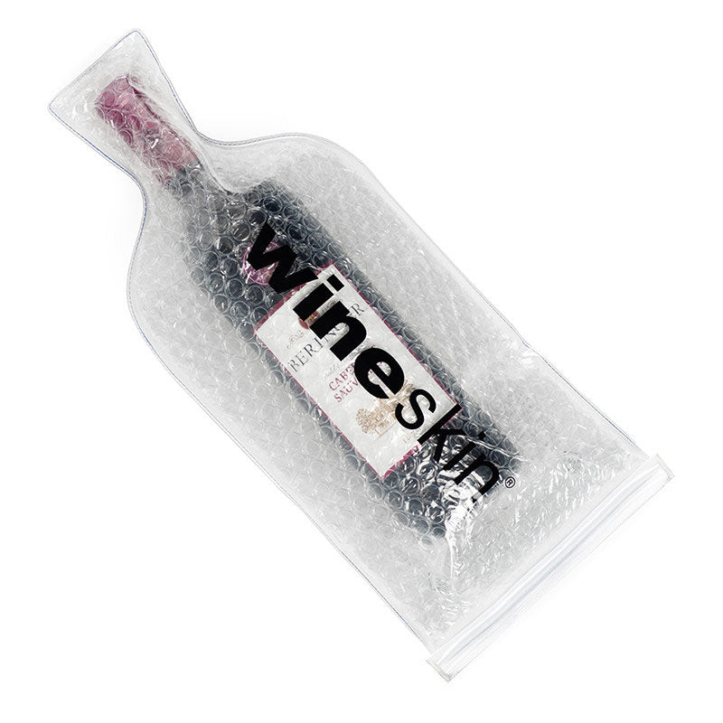 The WineSkin Bottle Transport Bag is an effective and simple solution for safely transporting bottles. It accommodates virtually every 750ml bottle of wine or fortified spirit bottle shape. The wine bottle protector is an air-cushioned, no-puncture bag that lets you travel with wine. You can transport wine bottles in a suitcase or backpack. Even though you can't carry it on board yourself, put it in with your checked luggage.
